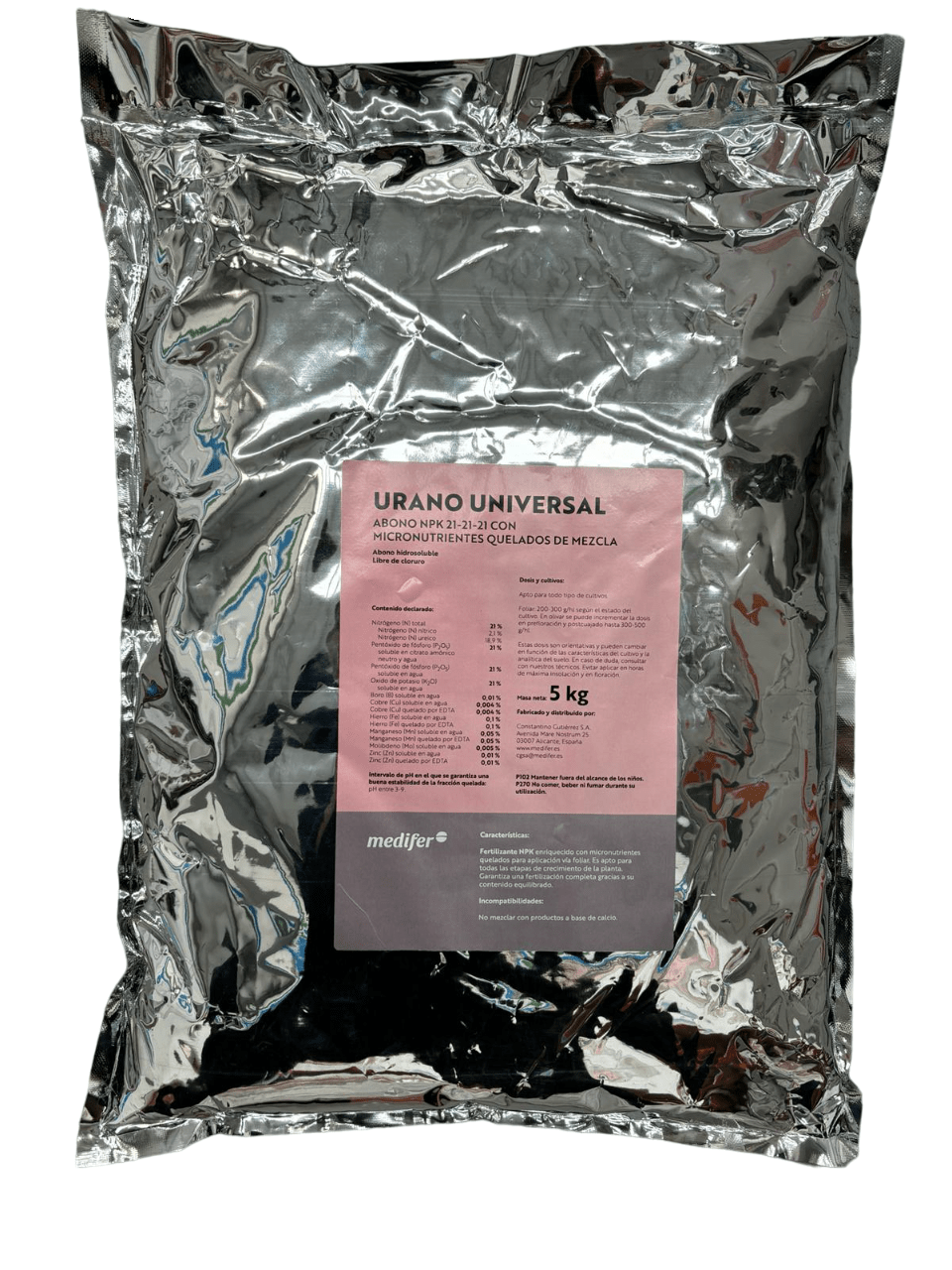 El Abono Urano Universal 5kg Medifer es un fertilizante versátil diseñado para cubrir las necesidades nutricionales de diferentes tipos de plantas. Con una fórmula equilibrada, mejora la salud, el crecimiento y la productividad en jardines, huertos y céspedes.