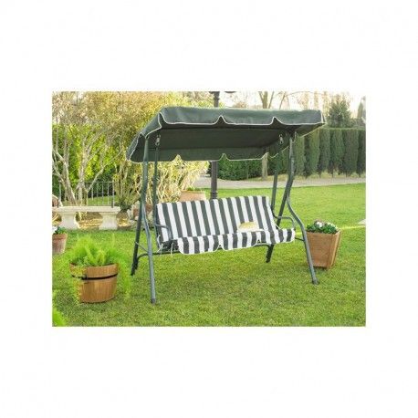 - Con un diseño elegante y versátil, este banco balancín se adapta a diversos estilos de jardín o terraza. Su apariencia atractiva lo convierte en un complemento decorativo ideal para cualquier espacio exterior, añadiendo tanto funcionalidad como estilo.