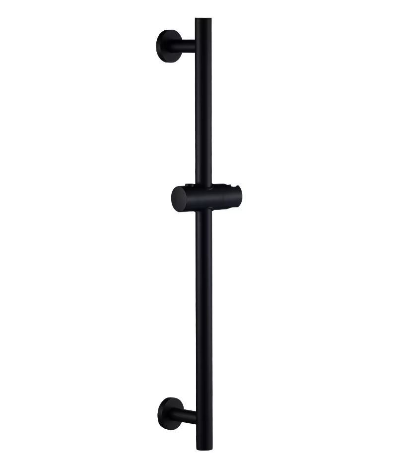 Barra de ducha negra moderna y versátil, diseñada para baños contemporáneos.