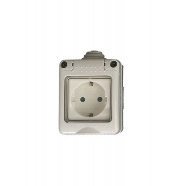 Este modelo de instalación superficial permite una colocación rápida y directa sobre pared, sin necesidad de empotrar. Está equipada con tapa protectora abatible, que garantiza el sellado cuando no está en uso. Su conexión interna suele ser mediante tornillos, compatible con cables rígidos y flexibles, y soporta una corriente nominal de 16A a 250V~, suficiente para la mayoría de dispositivos eléctricos residenciales o profesionales.