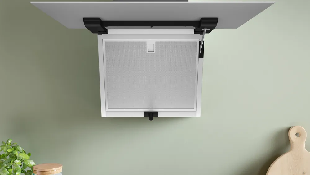 - Especialmente silenciosa: La campana super silenciosa. Concéntrate en tus recetas o charlas en la cocina en lugar de soportar el ruido de la campana extractora. Nuestra función super silenciosa reduce el sonido hasta un susurro. Es perfecta si sueles comer en la cocina o tienes una cocina abierta: apenas notarás que la campana está encendida.