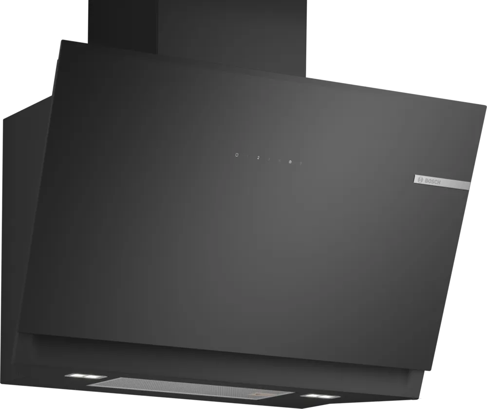 Campana decorativa de pared Bosch Serie 6 DWK81AN60, de 80 cm en cristal negro. Potente y silenciosa, con diseño moderno, motor EcoSilence y control táctil para una extracción eficiente y un estilo sofisticado en tu cocina.