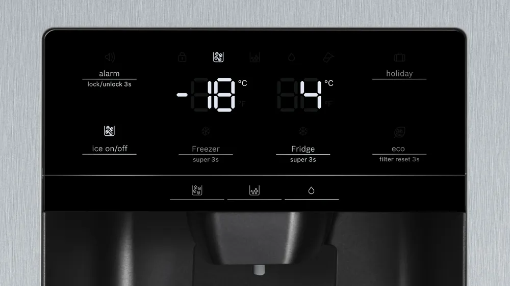 Frigorífico americano NoFrost: con un moderno display en la puerta y descongelación automática.