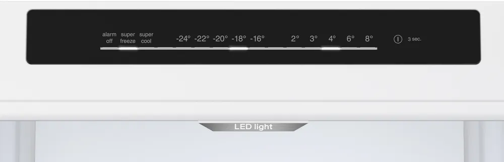 Feature IconCon la función de refrigeración «Súper», puedes bajar la temperatura del frigorífico durante un periodo de tiempo antes de ir a comprar. De esta forma, cuando introduzcas los alimentos en el frigorífico, alcanzarán rápidamente la temperatura adecuada. Solo tienes que pulsar un botón para bajar la temperatura hasta los 2 °C. Para que no tengas que estar pendiente, la función restablece automáticamente la refrigeración normal al cabo de 6-15 horas. Si dispones de un frigorífico conectado, también puedes activar la función refrigeración «Súper» desde la aplicación Home Connect.