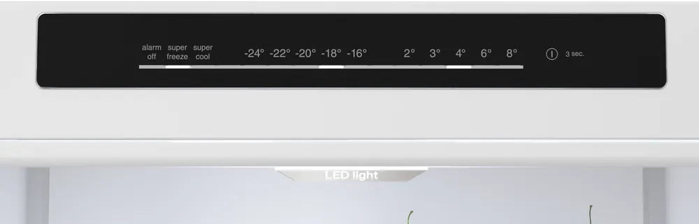 Feature IconCon la función de refrigeración «Súper», puedes bajar la temperatura del frigorífico durante un periodo de tiempo antes de ir a comprar. De esta forma, cuando introduzcas los alimentos en el frigorífico, alcanzarán rápidamente la temperatura adecuada. Solo tienes que pulsar un botón para bajar la temperatura hasta los 2 °C. Para que no tengas que estar pendiente, la función restablece automáticamente la refrigeración normal al cabo de 6-15 horas. Si dispones de un frigorífico conectado, también puedes activar la función refrigeración «Súper» desde la aplicación Home Connect.