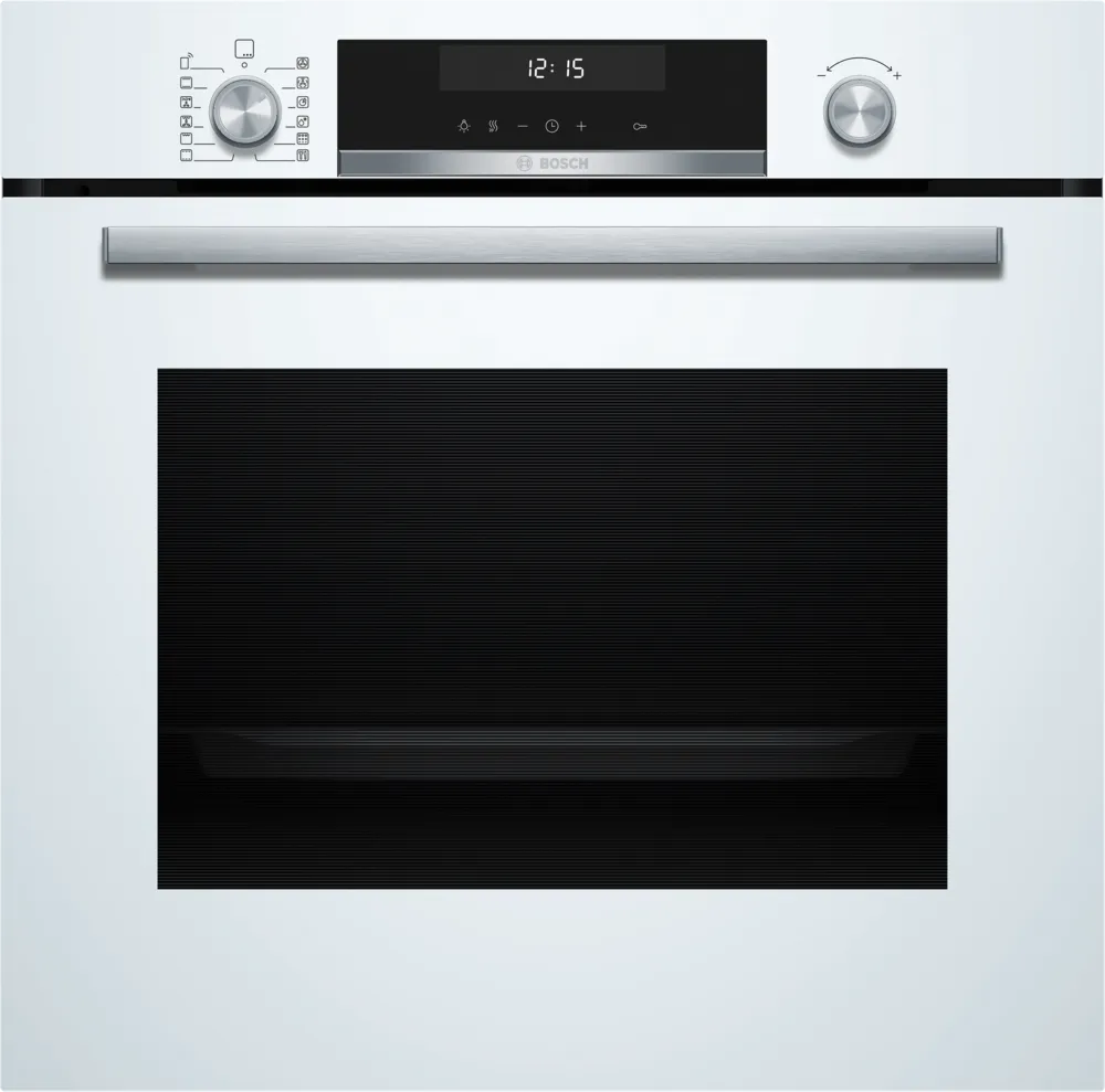 El horno Bosch HBG578EW7 de la Serie 6 es un modelo multifunción de 60 cm de ancho, diseñado en elegante color blanco. Ofrece una capacidad de 71 litros y cuenta con 9 funciones de cocción, incluyendo aire caliente 3D profesional y función Air Fry, que permite freír con aire caliente para obtener resultados crujientes sin necesidad de aceite. Su sistema de limpieza pirolítico facilita la eliminación de residuos de grasa y suciedad mediante altas temperaturas, dejando el interior limpio sin esfuerzo.