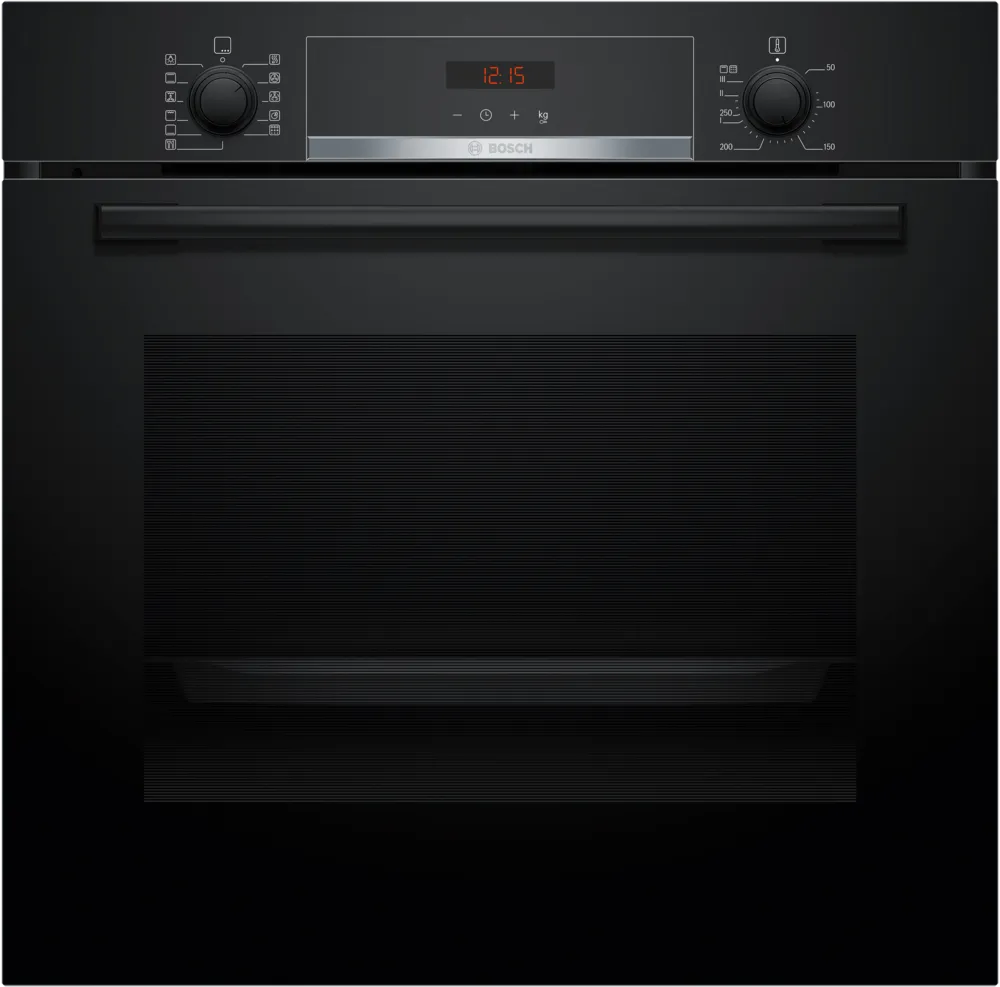 El horno Bosch HBA574BB3 de la Serie 4 es un modelo multifunción de 60 cm de ancho, diseñado en elegante color negro. Cuenta con una capacidad de 71 litros y ofrece 7 funciones de cocción, incluyendo aire caliente 3D profesional, función pizza y grill con aire caliente.