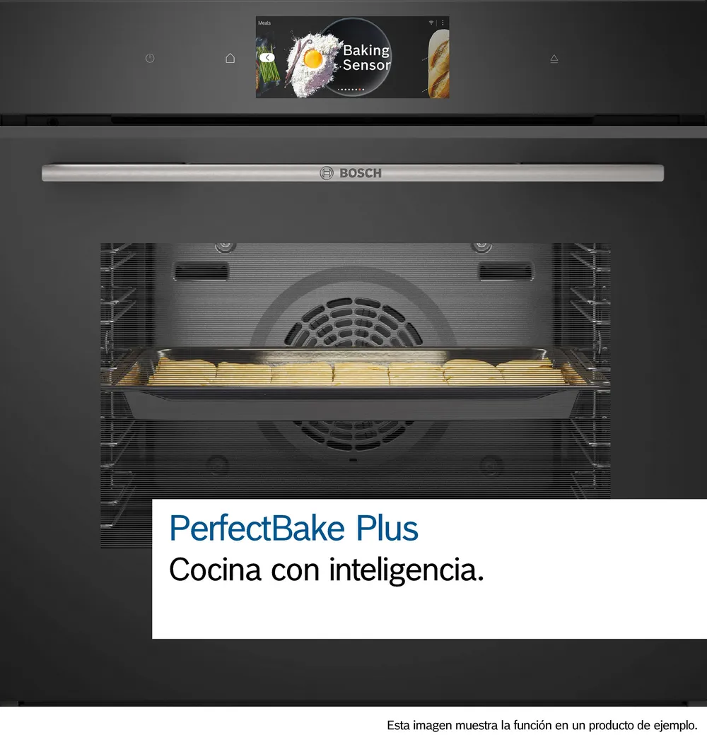 - PerfectBake Plus: Cocina con inteligencia. Cocinar al horno nunca ha sido tan sencillo. Solo tienes que seleccionar un plato, por ejemplo «Magdalenas», pulsar el botón Inicio y el horno se encargará de todo. Gracias a la inteligencia artificial y al sensor de cocción que mide la humedad del interior del horno, podrás saber cuántos minutos faltan para que tu receta esté lista. Para disfrutar de la función PerfectBake Plus, simplemente tienes que vincular el horno a tu cuenta de Home Connect.
