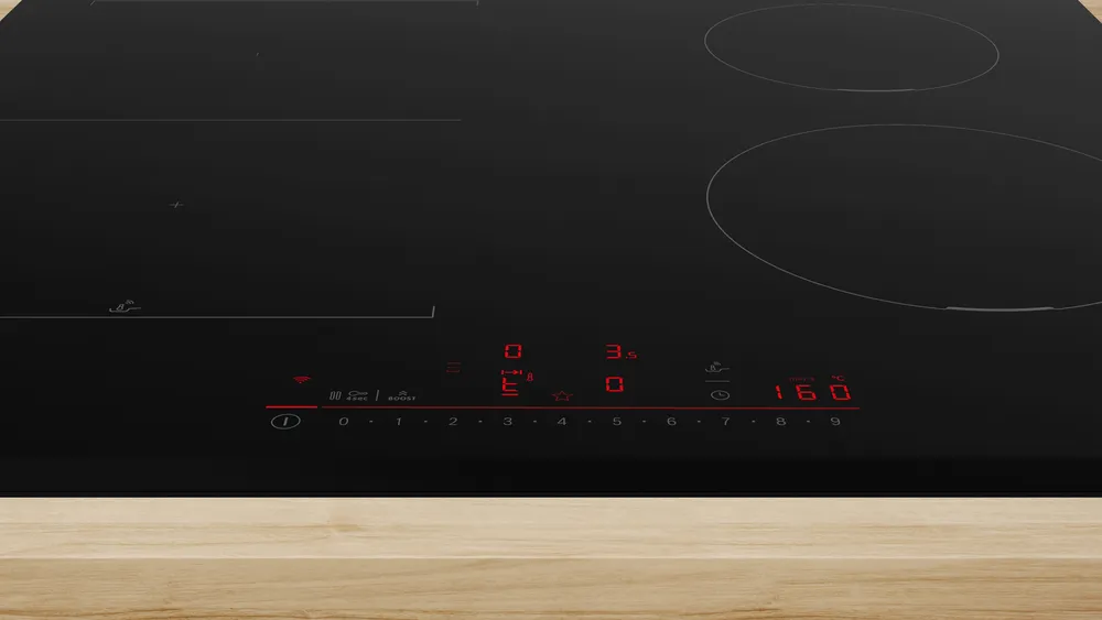 Es una placa de inducción de 60 cm de la Serie 6, diseñada para integrarse sin perfiles en tu cocina. Ofrece cuatro zonas de cocción con potencias de hasta 3,7 kW, ideales para una cocción rápida y eficiente.