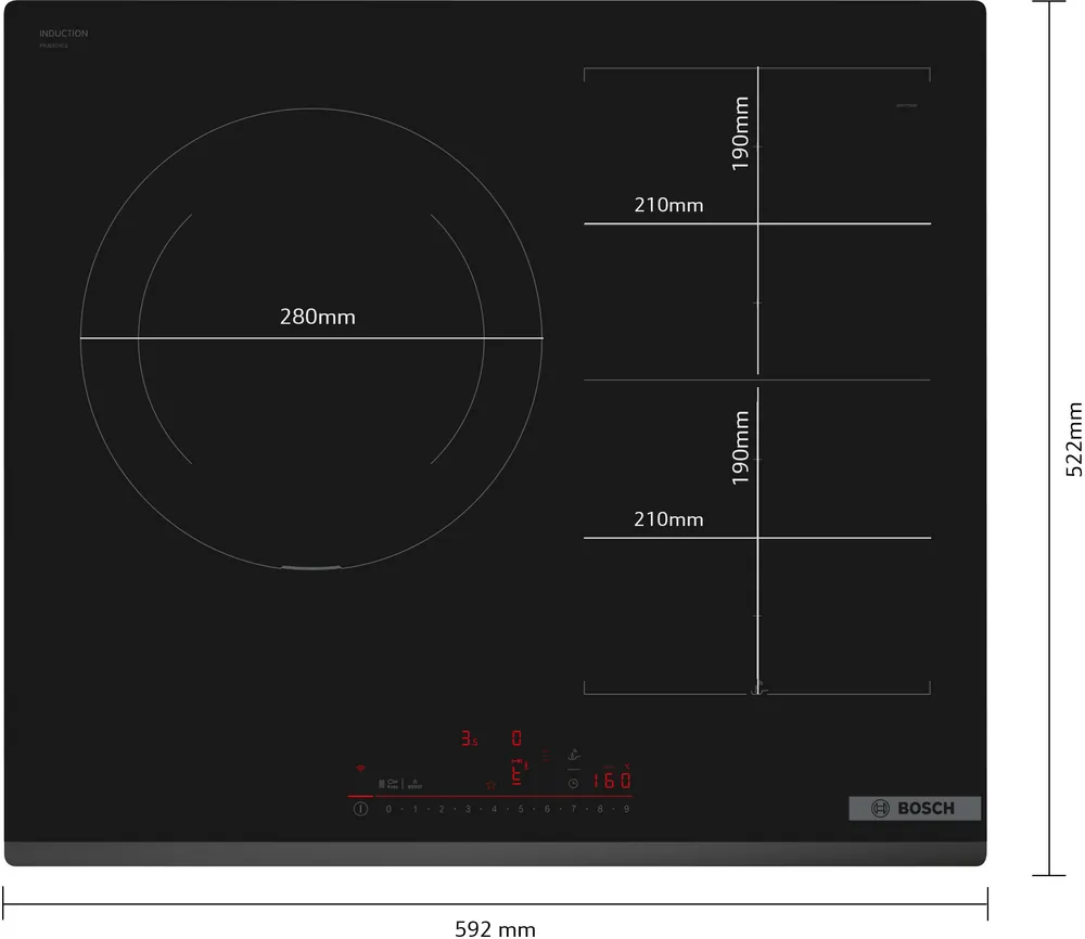 Bosch- Placa inducción, 60 cm, sin perfiles,Serie 6,PXJ631HC2E