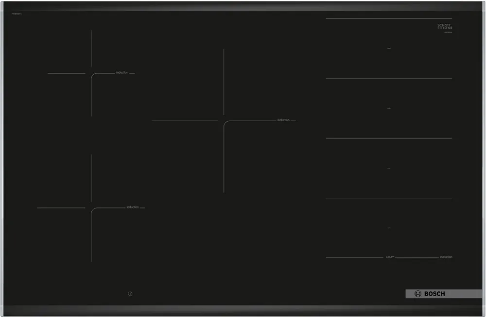 Con un ancho de 80 cm, cuenta con cinco zonas de cocción FlexInducción que se adaptan a recipientes de diferentes tamaños y formas.