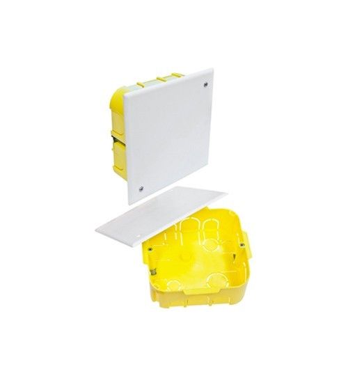 Caja pladur de 110x110x40 mm, ideal para instalaciones en paredes de pladur. Proporciona resistencia y seguridad en el montaje.