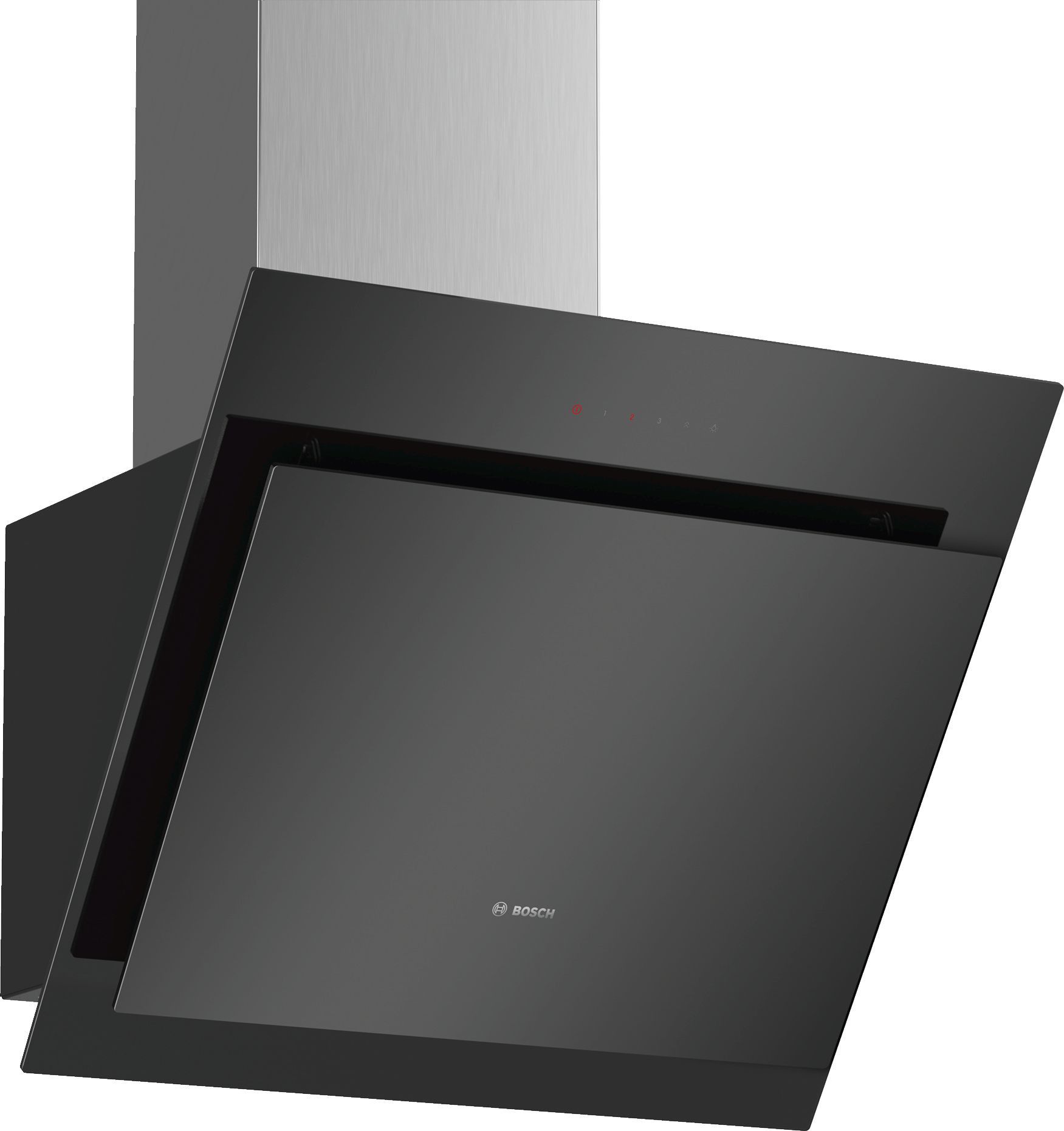 Campana decorativa de pared Bosch DWK67CM60, de 60 cm de ancho, diseñada para eliminar olores y grasas durante la cocción.