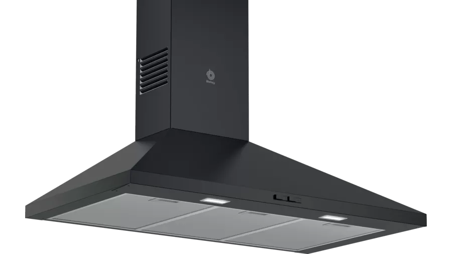 La campana decorativa de pared piramidal Balay 3BC696MN, con su elegante diseño en negro, es la combinación perfecta de estilo y funcionalidad. Con un ancho de 90 cm, es ideal para cocinas amplias, ofreciendo una potente capacidad de extracción de hasta 600 m³/h para eliminar eficazmente humos y olores.