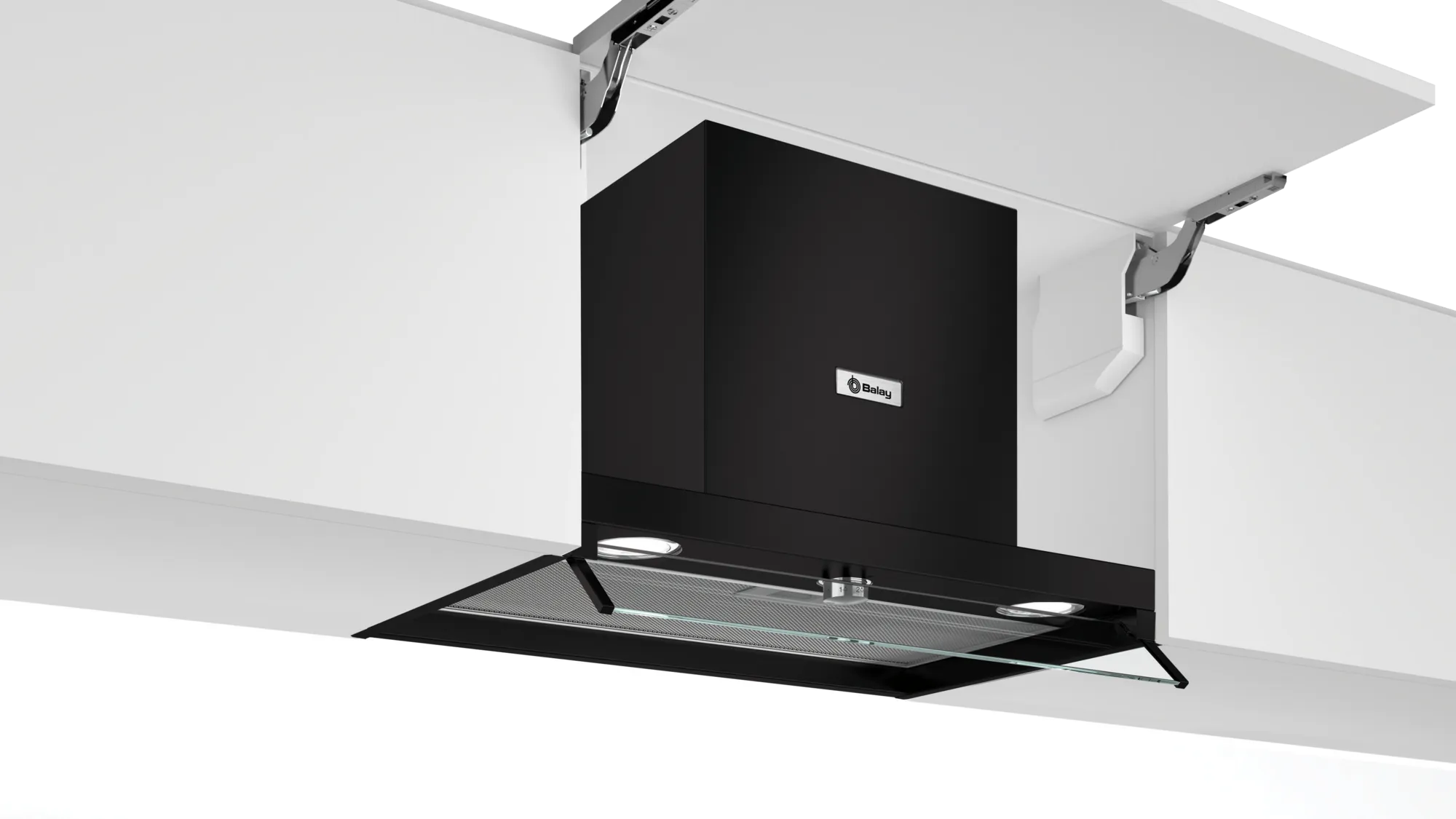 La campana decorativa integrada Balay 3BD866MN, con su elegante acabado en cristal, se integra perfectamente en la cocina, ofreciendo una solución eficiente y discreta para la extracción de humos y olores.