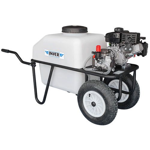 Carretilla Pulverizadora Hobby RCX80 INVER: Equipo autónomo de pulverización montado sobre dos ruedas, diseñado para aplicaciones en jardines, huertos y pequeñas explotaciones agrícolas.