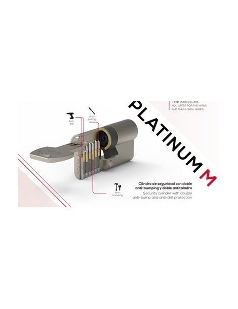 Cilindro de seguridad Platinum M PTM3030NC: Bombín de perfil europeo con alta protección para puertas.