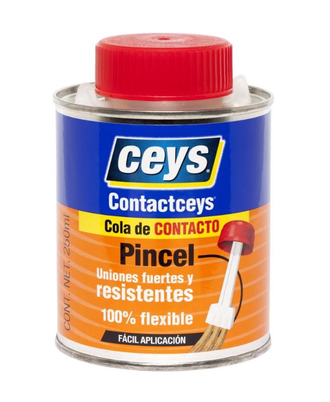 La Cola de contacto con pincel 250 ml Contactceys Ceys es un adhesivo de alta resistencia, diseñado para una aplicación precisa gracias a su práctico pincel incorporado. Ideal para proyectos de bricolaje, reparaciones domésticas y trabajos que requieren precisión en la aplicación. Este adhesivo se adhiere perfectamente a materiales como madera, metal, cerámica y plástico, ofreciendo una unión duradera y de alta calidad. El envase de 250 ml es perfecto para pequeños trabajos o reparaciones.