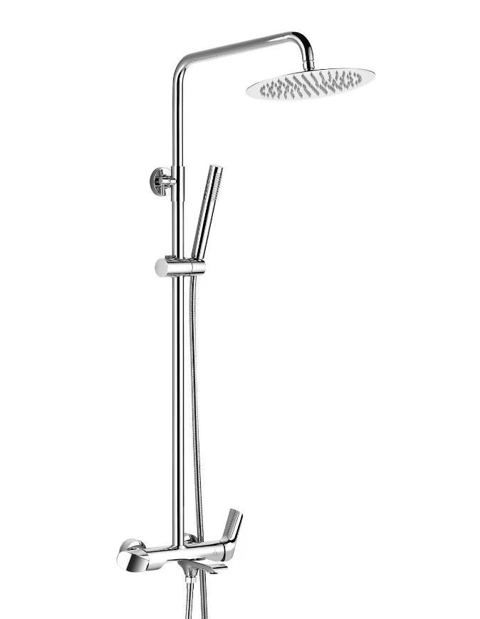Columna de ducha elegante con acabados resistentes y diseño ergonómico.