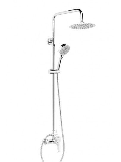 Conjunto de ducha completo Aquassent SAYRO en acabado cromado, incluye alcachofa y brazo, ideal para un baño elegante y moderno.