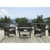 Disfruta de la máxima comodidad y estilo con el Conjunto de Jardín Seychelles 4 piezas. Este set, compuesto por 2 sillones, 1 banco y 1 mesa, está fabricado con una estructura de acero robusto y recubierto con ratán sintético de alta calidad, ideal para resistir las inclemencias del tiempo. Perfecto para exteriores como jardines, terrazas o patios, su diseño moderno y elegante aportará un toque de distinción a cualquier espacio. Además, su fácil mantenimiento y durabilidad lo hacen ideal para disfrutar todo el año al aire libre.