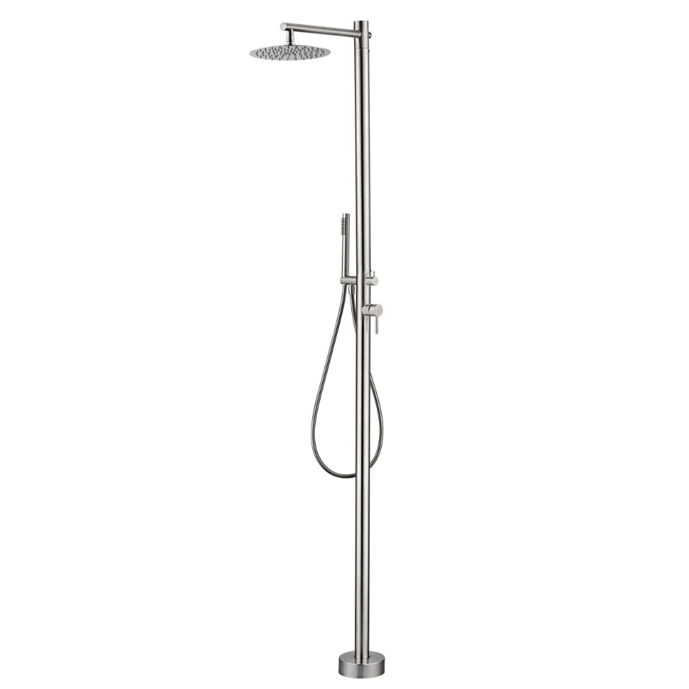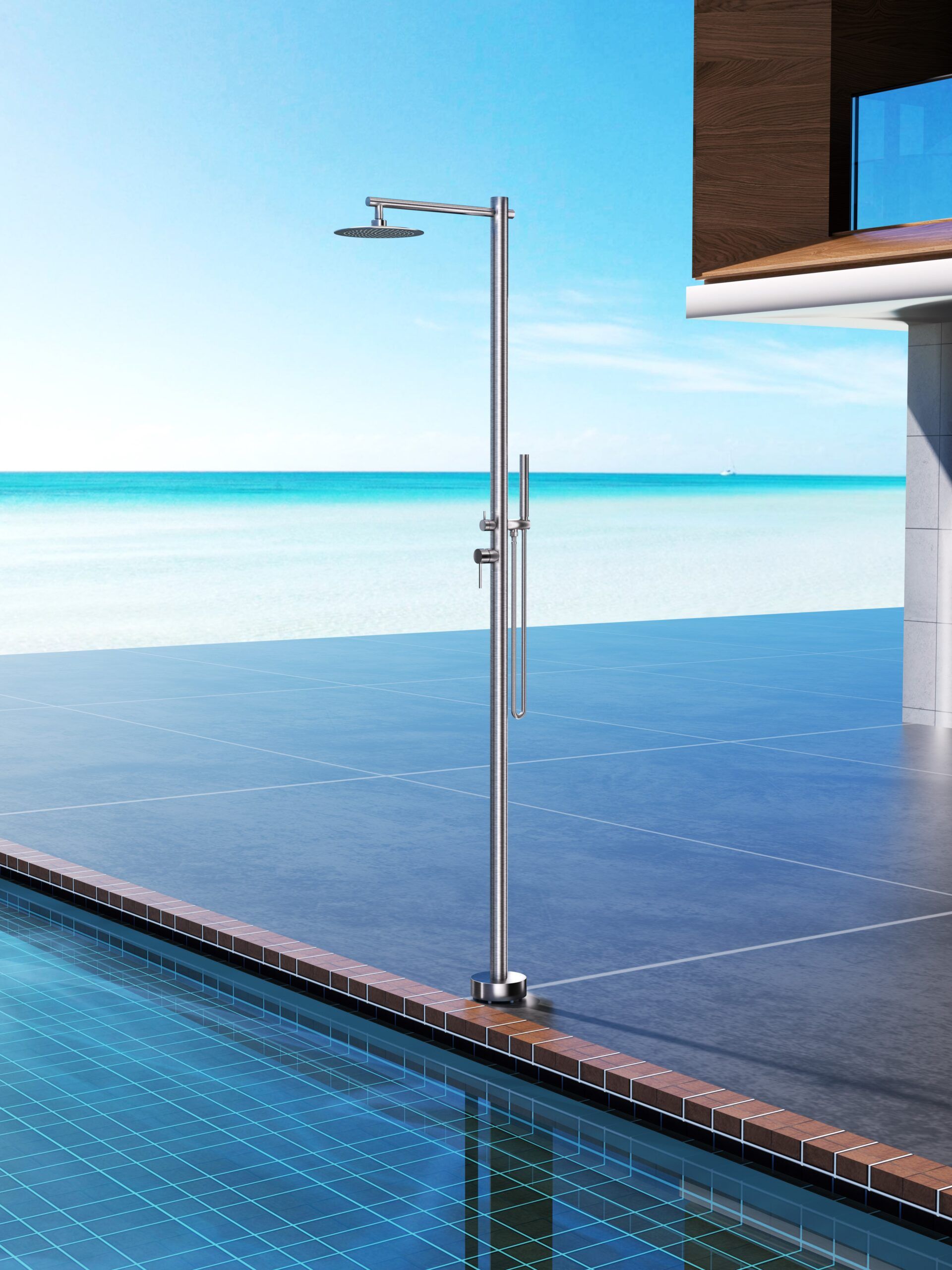 La Serie Kansas es una ducha de exterior de alta gama, pensada para quienes buscan versatilidad, resistencia y diseño profesional en espacios al aire libre. Fabricada en acero inoxidable S.316, su estructura ofrece máxima protección contra la corrosión, lo que la hace ideal para jardines, terrazas, spas o zonas de piscina, incluso en entornos marinos.