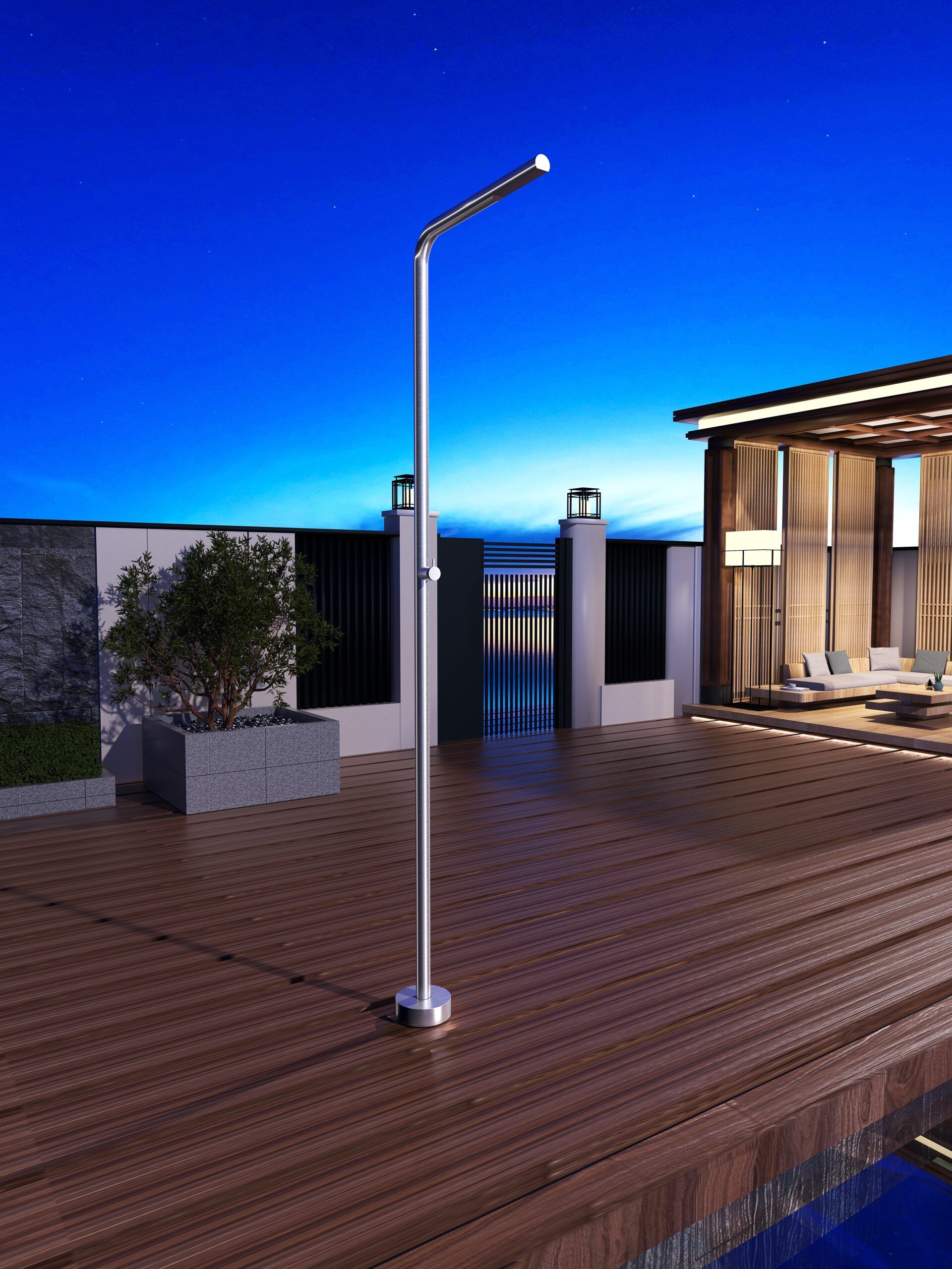 La Serie Texas es una ducha exterior compacta, resistente y elegante, ideal para espacios al aire libre como jardines, terrazas, spas o zonas de piscina. Fabricada en acero inoxidable AISI S.316, ofrece una protección excepcional contra la corrosión, lo que la hace perfecta para climas húmedos o marinos.