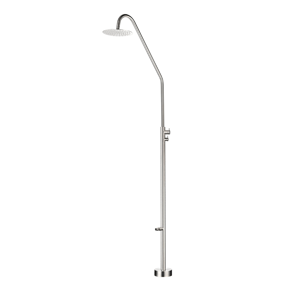 La ducha externa monomando Serie Dakota, fabricada en acero inoxidable marino S.316, es la solución perfecta para espacios exteriores como jardines, terrazas o áreas de piscina. Diseñada con materiales de la más alta calidad, garantiza una resistencia superior a la corrosión, ideal incluso en entornos salinos o húmedos.