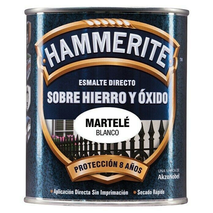 El Esmalte Hammerite 750ml proporciona una excelente cubrición, es lavable, no salpica y tiene un rendimiento de 10-12 m²/litro. Ideal para paredes y techos interiores, con secado rápido y alta resistencia a la corrosión.