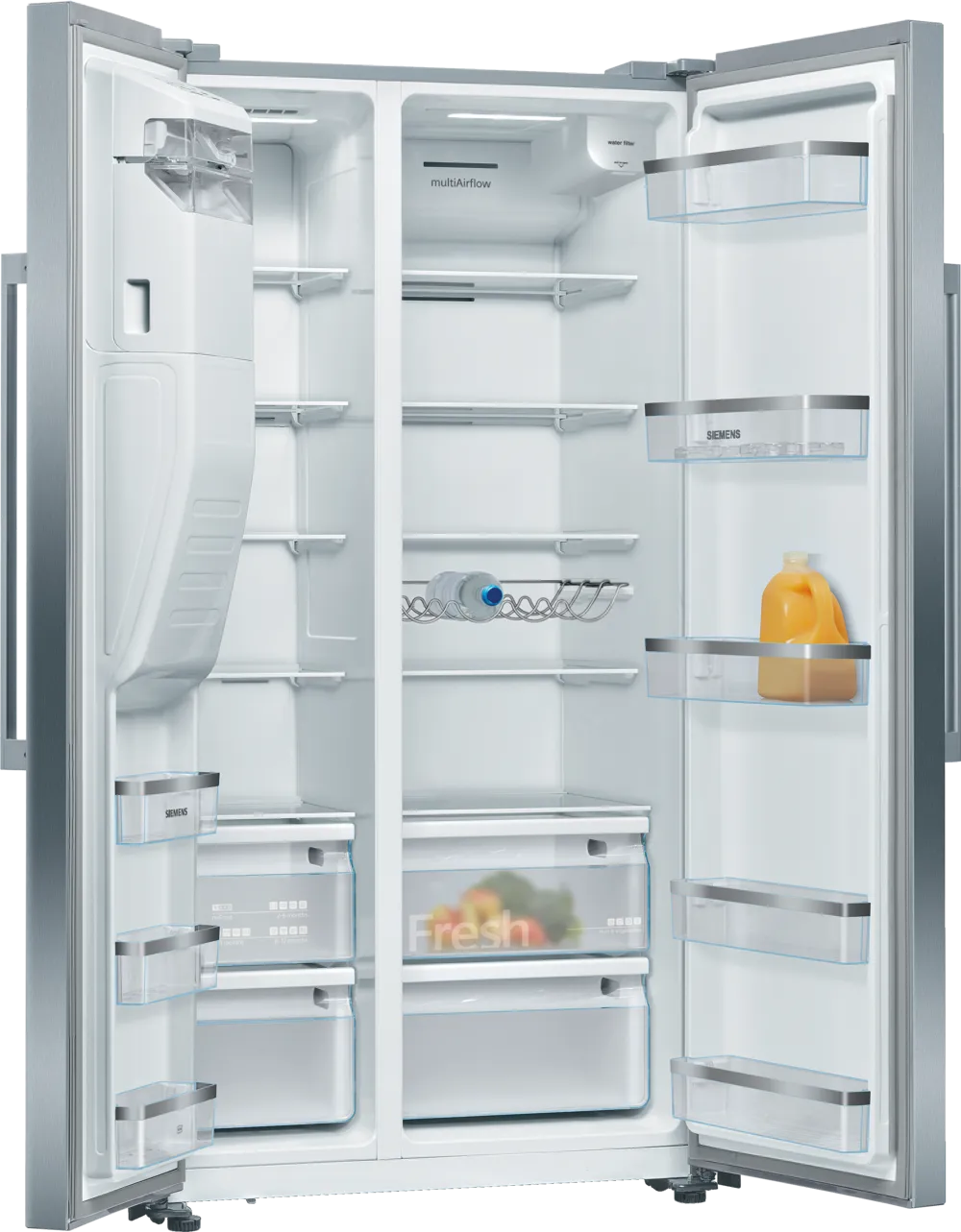 Frigorífico Americano No Frost con IceMaker y Display Digital. Combina diseño moderno y tecnología avanzada para ofrecer un rendimiento excepcional. Su sistema No Frost evita la formación de escarcha, mientras que el iceMaker automático te proporciona cubitos de hielo siempre que los necesites. El acabado en acero antihuellas mantiene la estética impecable, y sus funciones super-refrigeración y super-congelación aseguran la máxima frescura de tus alimentos.