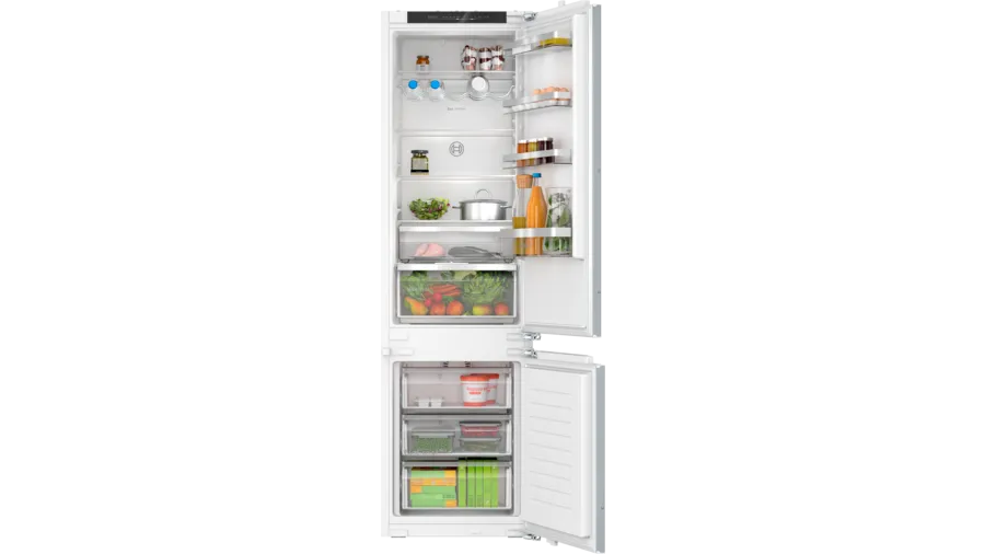El Frigorífico Bosch Serie 4 KIN96VFD0 es una opción integrable que combina un diseño elegante con tecnología avanzada para una conservación óptima de los alimentos. Su sistema de puerta fija permite una integración perfecta en cualquier cocina, ofreciendo un estilo minimalista y funcional.