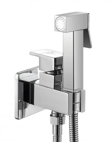 Este soporte de toma de agua a pared es una solución práctica y elegante para baños que requieren funcionalidad y eficiencia en espacios reducidos o como complemento a inodoros o bidés. Incluye un sistema monomando para la mezcla de agua fría y caliente, permitiendo un control preciso de la temperatura con un solo mando. Su diseño compacto y funcional lo convierte en una excelente opción tanto para hogares como para instalaciones profesionales.