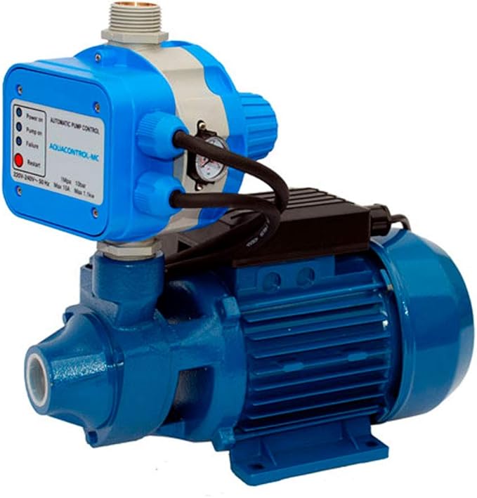 Este grupo de presión incorpora un manómetro, una válvula de retención y un regulador de presión, lo que facilita la instalación y el mantenimiento del sistema. La carcasa pintada en azul no solo le da un acabado estético sino que también protege contra agentes externos.