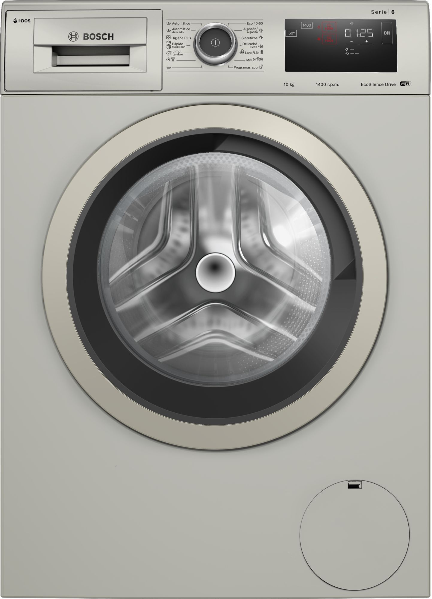 Bosch WAL28PHYES: 10 kg, 1400 r.p.m. Diseño premium en acero antihuellas con tecnología avanzada y gran capacidad.