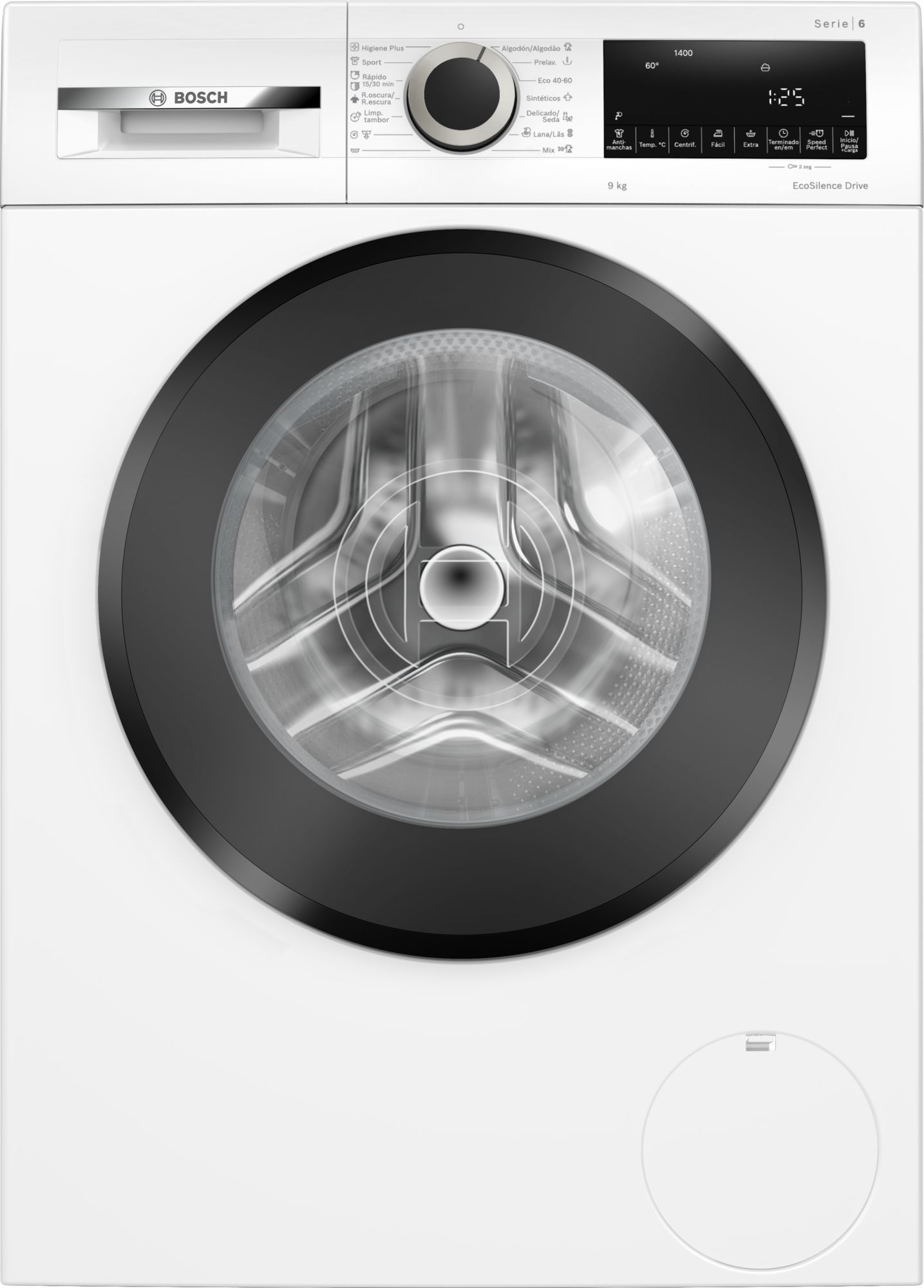 Lavadora Bosch WGG14401EP: 9 kg, 1400 r.p.m., motor silencioso y eficiente, perfecta para cuidar tus prendas y el medio ambiente.