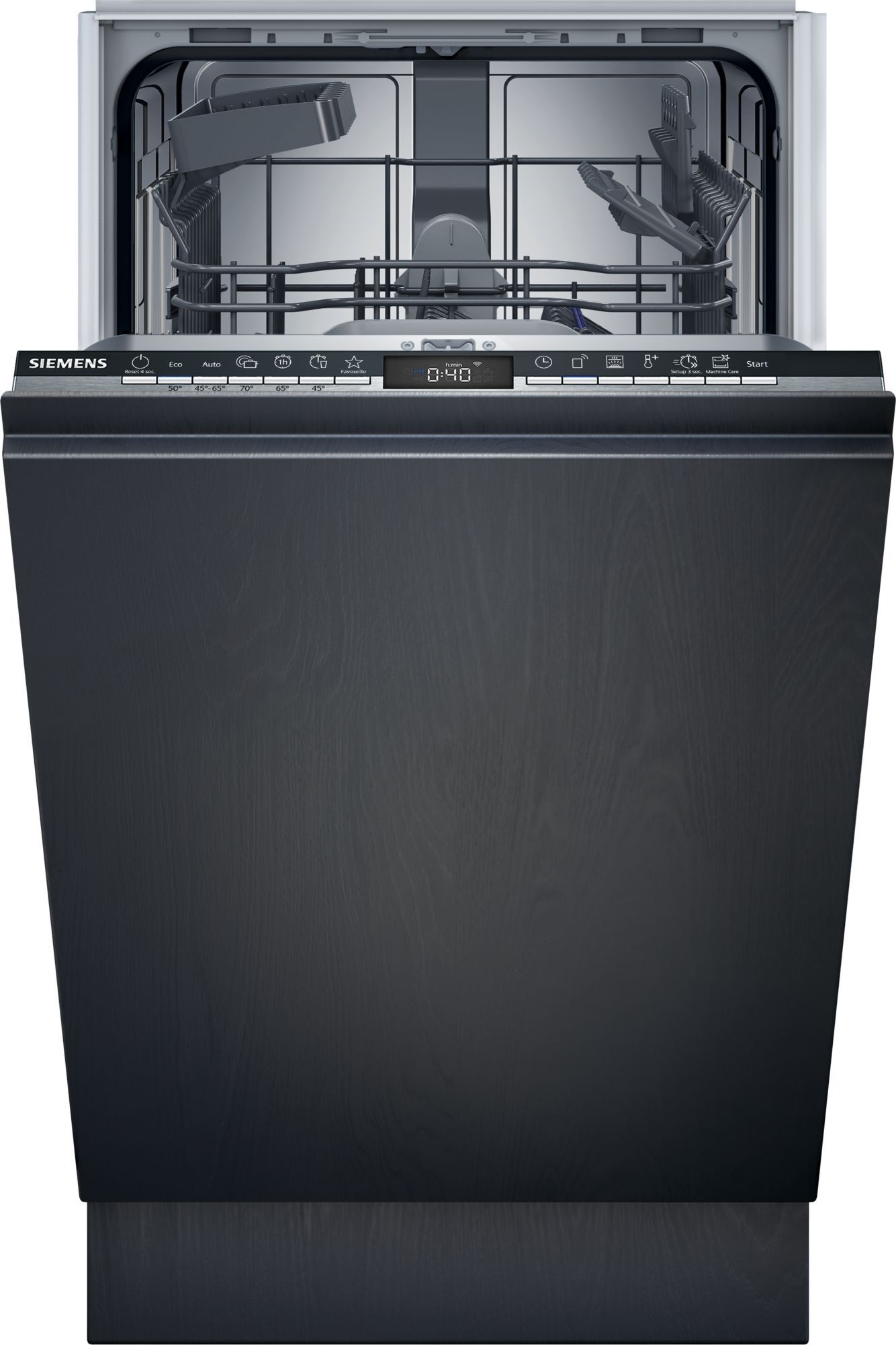 Este lavavajillas de 45 cm de Siemens combina diseño compacto con una puerta deslizante, ideal para cocinas con muebles bajos.