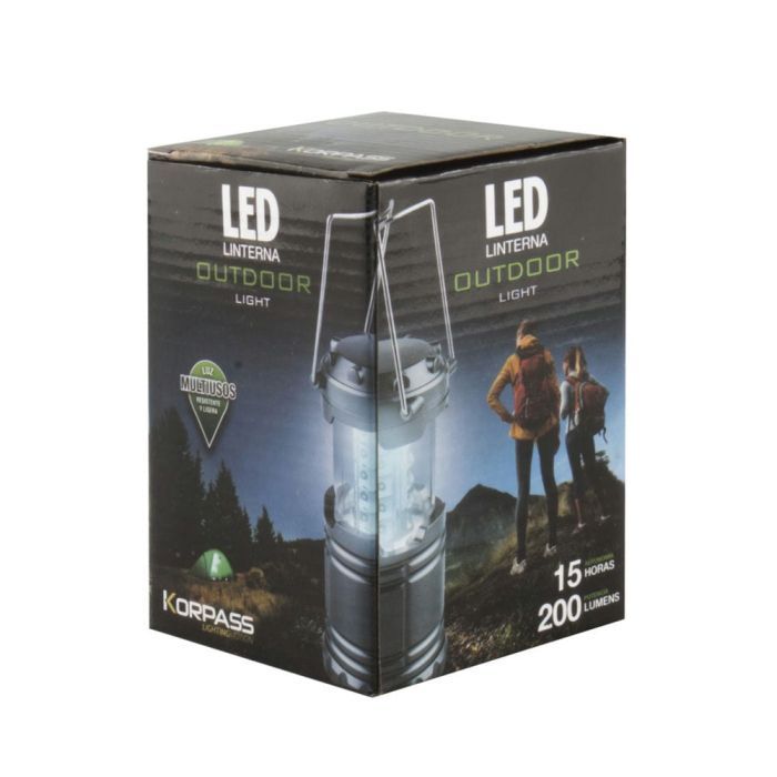 Descripción Completa: La Linterna LED Korpass Camping 200LM es una opción compacta y eficiente para iluminar tus actividades al aire libre. Con 30 LEDs de alta luminosidad, esta linterna ofrece una salida de 200 lúmenes (200LM), proporcionando una iluminación clara y de calidad. Su diseño compacto y extensible la hace fácil de transportar y ajustar según tus necesidades. Además, cuenta con un doble asa/gancho independiente, lo que te permite colgarla o sostenerla cómodamente en cualquier lugar. El cuerpo está fabricado en PC (policarbonato), un material resistente y duradero que asegura la robustez de la linterna. La Linterna Korpass funciona con 3 pilas AA (incluidas), lo que la hace práctica y lista para usar de inmediato en cualquier momento.