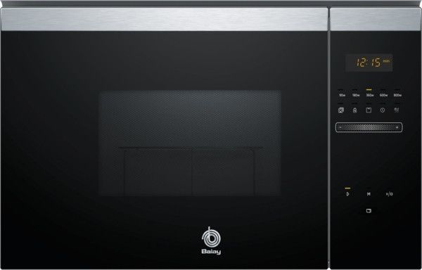 Microondas integrable Balay 3CG4172X2 de tamaño estándar (60×38 cm) en un atractivo diseño combinado de negro y acero inoxidable.