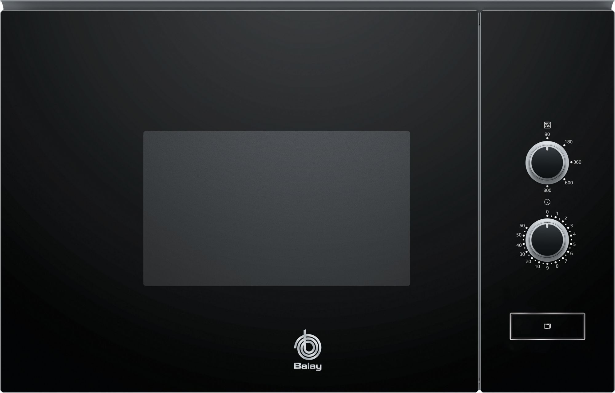 – Microondas integrable de 59 x 38 cm con acabado en cristal negro.