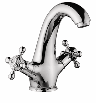 Fabricado en latón de alta calidad con acabado en cromo brillante, garantiza una excelente resistencia a la corrosión y al uso diario. Su sistema bimando con volantes de estilo vintage permite controlar de manera independiente el flujo de agua caliente y fría, con una apertura suave gracias a sus monturas cerámicas de 1/2 vuelta, que ofrecen mayor durabilidad y un cierre preciso.
