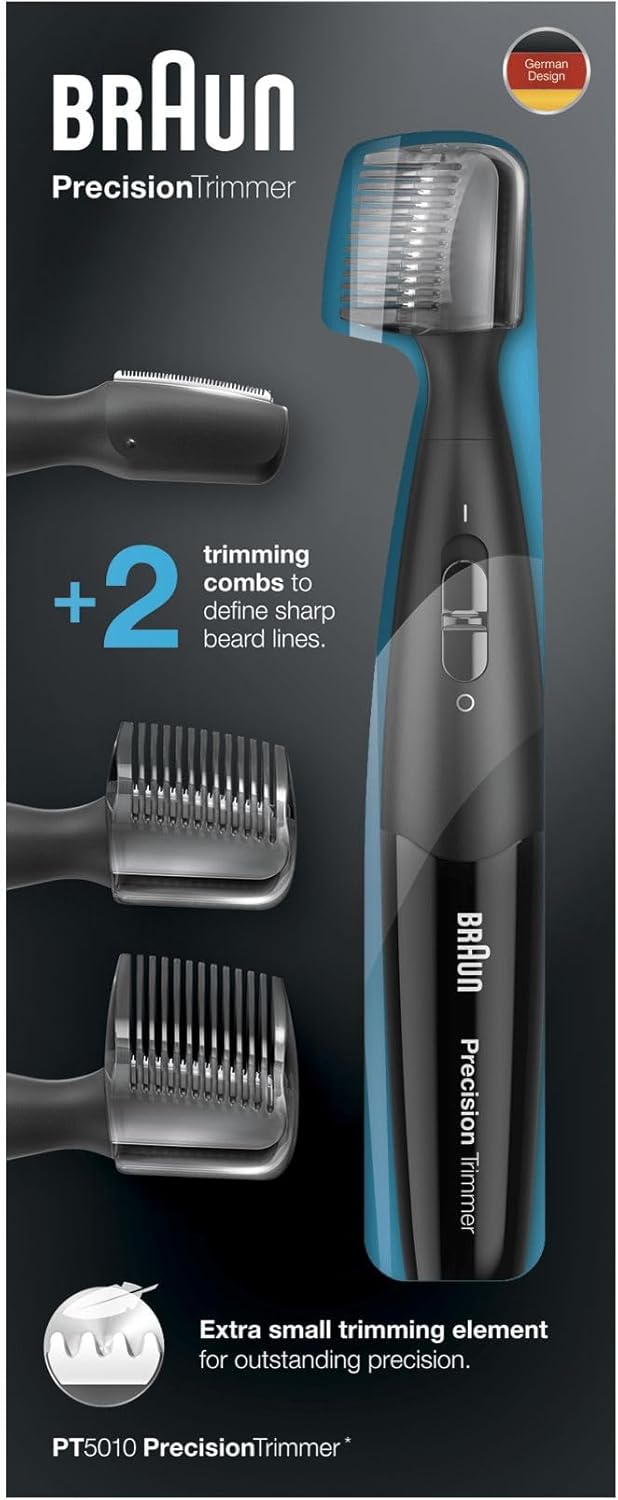 La perfiladora Braun PT5010 Precisión es la herramienta ideal para lograr un acabado perfecto en barba y bigote. Diseñada para proporcionar precisión en cada detalle, cuenta con cuchillas afiladas de alta calidad que permiten definir contornos de manera sencilla.