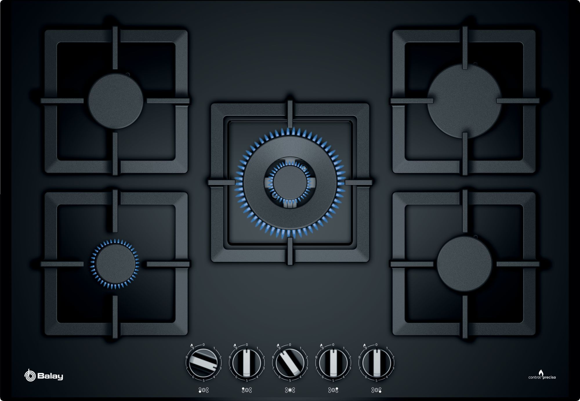 - 5 quemadores: Cuenta con cinco quemadores de diferentes tamaños y potencias, incluyendo un quemador wok de doble anillo, lo que te permite cocinar una amplia variedad de platos al mismo tiempo. Un quemador auxiliar, dos semi-rápidos y un rápido te brindan la flexibilidad necesaria para adaptar la cocción a tus necesidades.