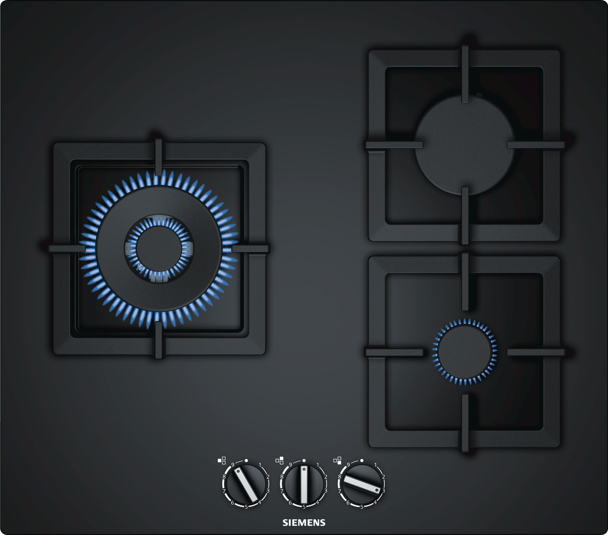 Placa de gas Siemens iQ500 de 60 cm, en negro.