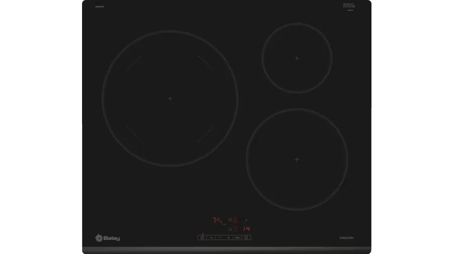 La Balay 3EB865FR es una placa de inducción de 60 cm en color negro, diseñada para una cocina eficiente, rápida y segura. Dispone de 3 zonas de cocción, incluyendo una zona gigante de 28 cm, perfecta para ollas y sartenes grandes.