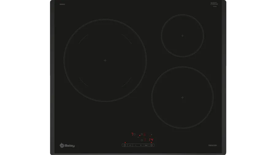 La Balay 3EB965LR es una placa de inducción de 60 cm con un diseño moderno en color negro, ideal para quienes buscan eficiencia y comodidad en la cocina. Sus tres zonas de cocción, incluyendo una zona gigante de 28 cm, permiten cocinar con mayor flexibilidad.