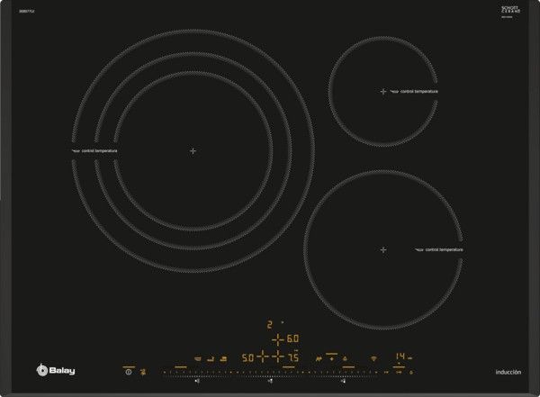 | Placa de inducción Balay de 70 cm con zona gigante, control táctil y diseño negro. |