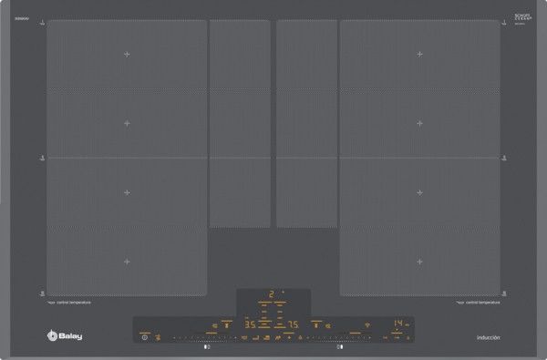 Placa de inducción Balay de 80 cm con zona Flex y diseño en gris antracita.