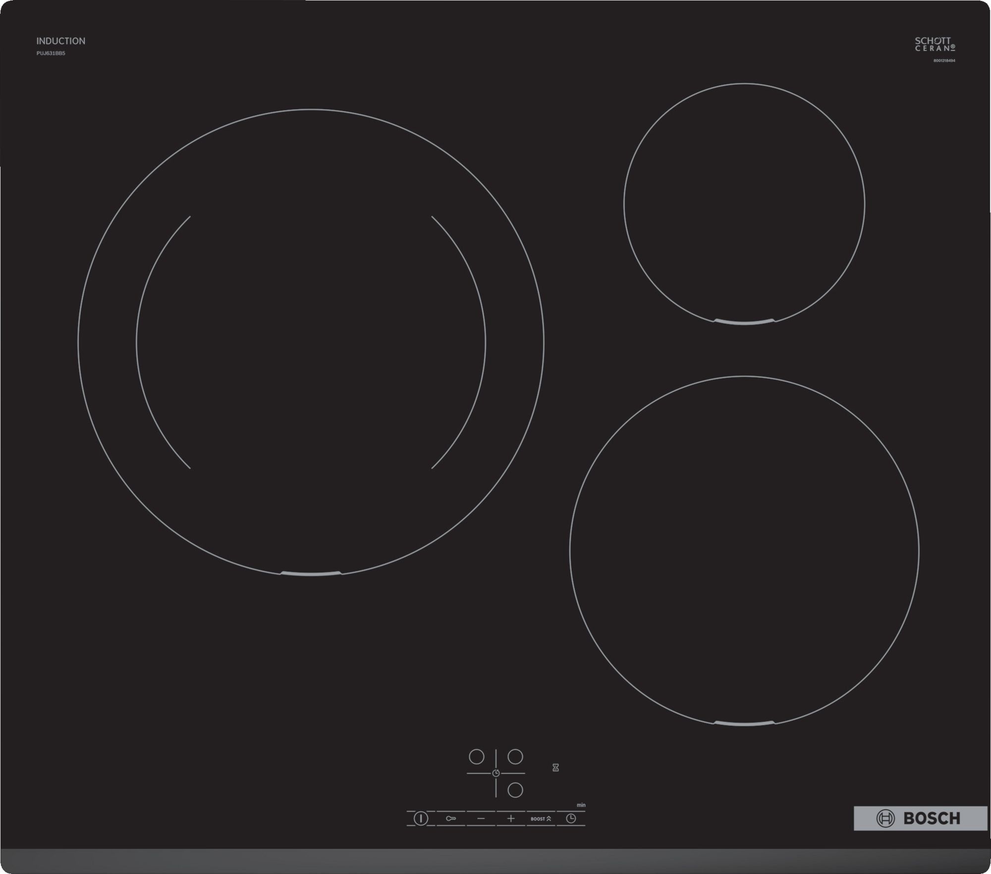 Placa de inducción Bosch PUJ631BB5E , 60 cm , Negro , sin perfiles