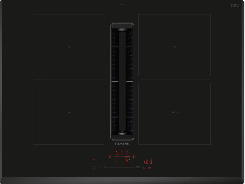 Placa de inducción extractor integrado Siemens. Diseño limpio e impecable.