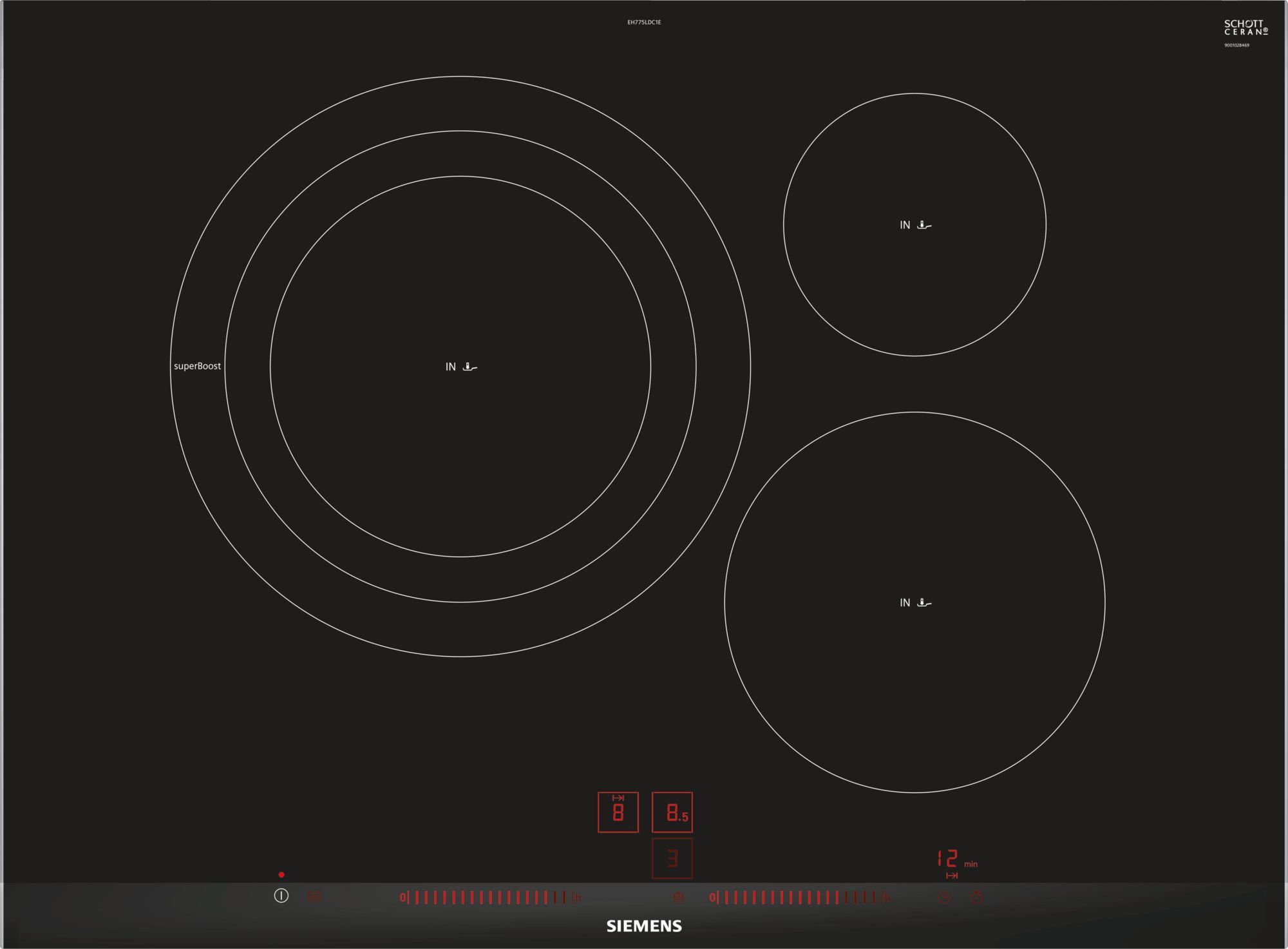 Placa de inducción Siemens iQ300 EH775LDC1E de 70 cm en color negro con perfiles, diseñada para una cocción rápida y precisa.